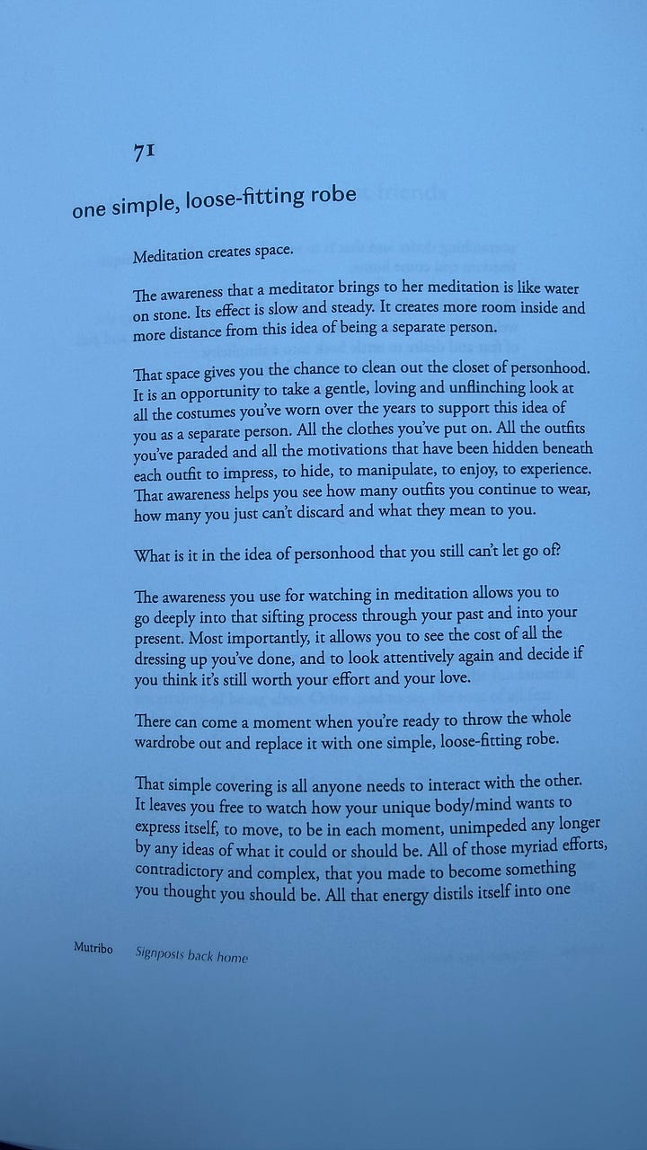 Lastly, I will leave you with this beautiful contemplation by Mutribo which I have shared once before. This is from the book Signposts Back Home, which is a meditation companion created in collaboration with The Broad Place: